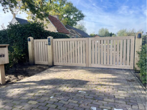 Eikenhout staat bekend om zijn robuustheid en sterkte, waardoor het uitstekend bestand is tegen zware weersomstandigheden zoals hevige regenval, sneeuw en extreme temperaturen. Maar voor grote poorten en poorten die geautomatiseerd worden is Iroko een betere keuze.